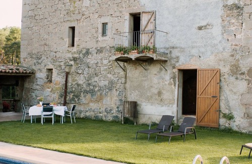 (Text automatically translated) Vilanova, known in its early days under the name of Vilamoura, is part of the family, together with the Barraca and Cabana, since 1571. Initially inhabited by the children of the family and later by masovers, until in 2000 the house fully restored with the aim of agrotourism. Since then the house has been improving every day to be as it is today. We tried to take care of every detail to make the home a cheerful and welcoming. It is located in the middle of a farm and about 2 km. casserres village. Moreover, it is in the countryside and surrounded by pine forests, beside Clara Riera. Enjoys complete tranquility and splendid views of the Pyrenees. Downstairs, the house offers two en suite double rooms. On the second floor, kitchen with fireplace, dining room, living room with fireplace, TV, DVD and VHS, two bathrooms and five double bedrooms, two with en suite. On the outside, pool, barbecue and entertainment area with swings and a basketball hoop.