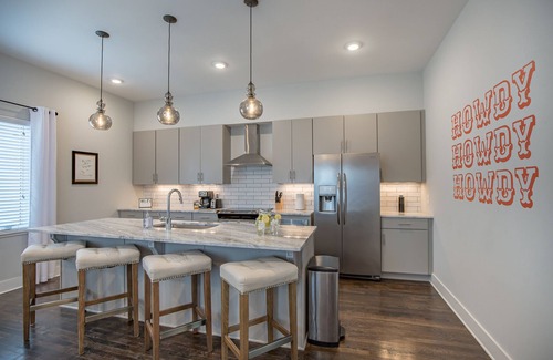 Experience Nashville from our modern townhome styled with mid-century modern flare. There's plenty of space to spread out in the 3 bedroom, 3.5 bath residence and marvel at the murals hand painted by local Nashville artists.