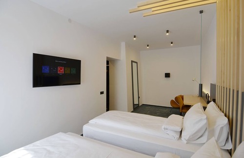 Surrounded by the medieval defence walls of Sibiu City, our boutique hotel is a sublime fusion of old and new. 600 years of history veil our 4 deluxe rooms, upgraded with the latest technology. Each room is equipped with our signature Super King Size beds with geometric wood structure and LED lighting, Wireless charging nightstands, Bluetooth Speakers, 55 inch Smart TVs, free Netflix streaming, vanity mirrors, and other facilities.