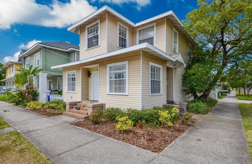 Fully furnished 2-bedroom apartment in a historic building in the heart of Hyde Park / Soho. King bed in the master bedroom and the 2nd bedroom is furnished for work-from-home with a desk with futon. This charming quadplex is a converted historic home—walking distance to local restaurants, wine bars, coffee shops, fashion boutiques, and world-famous Bayshore Boulevard (you can see the water from the front of the building)