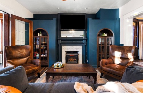 This 2-home complex is close to downtown, and features an expansive private yard. Your large group can spread out between a 3000 sq ft Victorican home (sleeps 13) and the adjacent carriage house (sleeps 4).