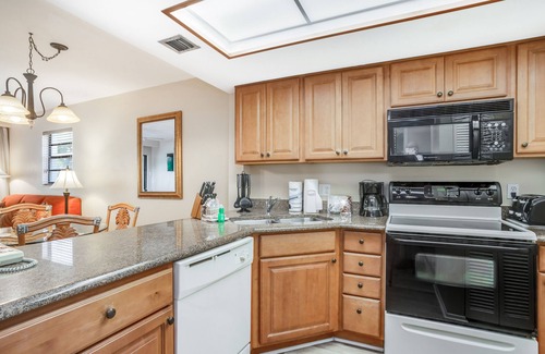 The hustle and bustle and coastal vibes of Naples await you and your guests at this wonderful getaway. Boasting wonderful areas to relax in style both inside and out, you will have the choice of kicking back indoors with a movie on the flatscreen TV or heading to the screened balcony offering plenty of seating to enjoy a cocktail in the fresh air. When days heat up, the sparkling shared pool awaits for a quick dip or afternoon of tanning. For even more fun in the sun, make your way to the volleyball or tennis courts and indulge in some friendly competition. Though there is a delicious restaurant on-site, the fully equipped kitchen awaits back at home base for easy meal prep on modern appliances.