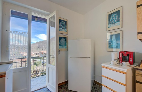 Cortiletto di Marina accommodates up to 4 guests, offering a peaceful escape in the heart of Brovello Carpugnino. A private garden with a dining area and BBQ is perfect for enjoying a cosy time. Step inside into a bright living room with a sofa. The kitchen is fully equipped with a cooker hob, Moka coffee machine, electric kettle, microwave, dishwasher, and fridge. The dining area seats four, offering a cosy spot for family meals or intimate dinners. There are two balconies, a private one in the kitchen and a shared one near the entrance with a garden view.