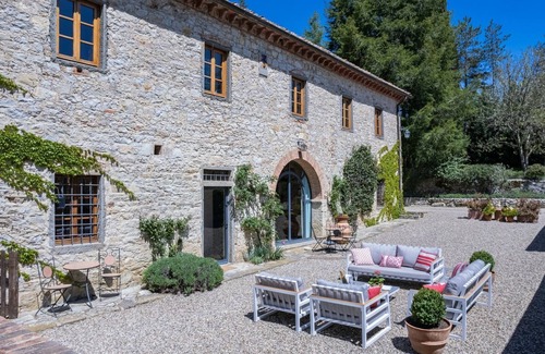 Surrounded by woodland, the villa is just 3 km from Gaiole in Chianti. Guests can easily explore the region’s famous wineries, castles, and charming towns. Siena, San Gimignano, Florence and Arezzo are all within reach for a day trip, and the renowned Castello di Broli - whose owners once owned Il Molinaccio - is just 15 minutes away by car.