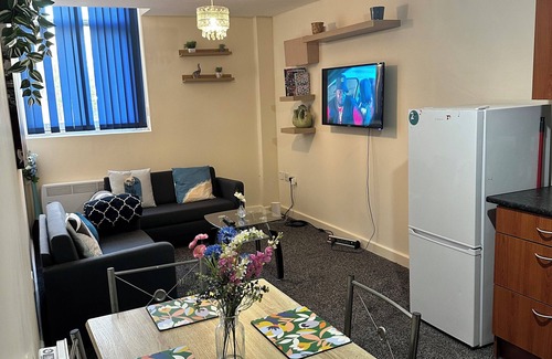 In the heart of Wolves! Airrose two bed apartment is located in Wolverhampton. In the heart of Wolves! Airrose two bed apartment provides accommodation, featuring Laundry, TV, Security/Safety, among other amenities. This Apartment features Laundry, TV, Security/Safety, to make your stay a comfortable one.