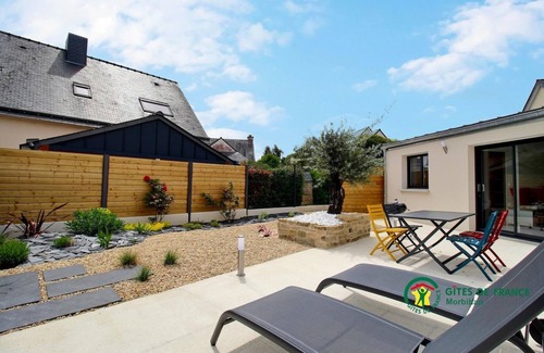 This single-storey rental consists of a living room with an equipped kitchen open to the living room, a bedroom with a 160x200 bed, a bedroom with two 90x200 beds and a bathroom with walk-in shower and toilet. Outside, you will enjoy a furnished and landscaped terrace facing south-east with dining table, barbecue, plancha, parasol and deckchairs. Possibility to park two vehicles in front of the gîte. Pass in front of the owners' house to reach the rental. Plougoumelen is a town located in the heart of the Gulf of Morbihan, it is registered in the club of the Most Beautiful Bays of the World. You are at the start of many hiking and sea outing sites. The Gulf of Morbihan is home to around forty islands nestled in a small sea. During your stay, stroll through the markets of Auray, Vannes (ranked second among the most beautiful markets in France in 2022) or even Larmor-Baden. If you are not a fan of shore fishing, you can taste oysters and seafood in one of the nearby oyster yards. You are ideally located to visit the high places of tourism in Brittany such as Carnac and its alignments, Le Bono and its old suspension bridge, the island of Berder which is accessible at low tide or the Almost Island of Quiberon and the Presqu' Rhuys Island.