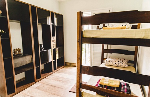 - No quarto 2 há 2 beliches e 1 colchão extra