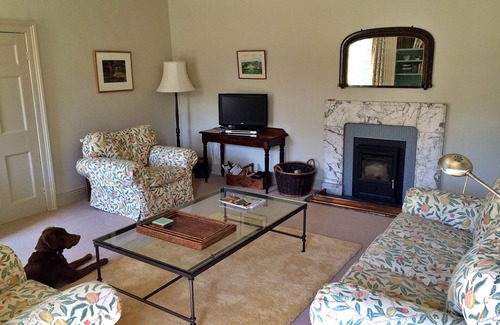 Enjoy a spectacular view from the South Front, a ground-floor apartment overlooking the woods and hills, which is also accessible to disabled guests. The sitting room, once Lord de Lisle's private dining room, is delightfully bright and spacious, featuring two large Georgian windows with window seats and a cosy log-burning stove. The dining kitchen is equally bright and pretty, while the bedrooms offer a comfortable and relaxing retreat. The master bedroom features a king-size bed and en suite bathroom, while the other has twin beds and a separate shower room. The apartment also boasts access to the internal South Courtyard, where you can enjoy outdoor seating and soak in the stunning scenery.