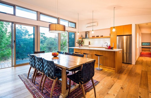Set in the middle of a large bush block, surrounded by ancient grasstrees, banksias, sheoak trees and tall native timbers, this home has a secluded and peaceful ambiance that’s just right for relaxing after a long day spent at the nearby beaches, out exploring nearby wineries or daytripping to the myriad of restaurants and art galleries in the local area.