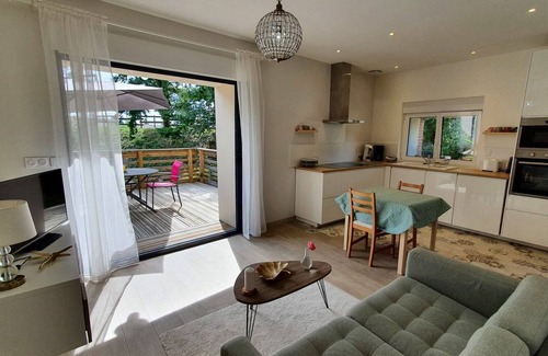 Small independent accommodation for 2 people in a 17th century farmhouse. From the beautiful living room, you can enjoy the calm of the countryside and relax on the large terrace with a view of the pond. You will see our ponies a little further on, watching you with envious eyes. You access your accommodation through the courtyard of the farm where you can park your vehicle. A large living room awaits you with a fully equipped kitchen, a dining table and a living room opening onto the terrace and the pond. A bedroom with a king size bed (possibility of 2 single beds) with its adjoining bathroom (walk-in shower, WC, washing machine). Sheets provided and beds made on arrival, towels included and heating included. Optional services to be paid on site and to be reserved before your arrival: - End of stay cleaning: 31.91€ per stay Unless stated, services such as cleaning, bed linen, towels etc. are not included in the price of this rental. If pets are allowed (information in the advertisement), charges may be applicable. Only equipment mentioned in this advertisement are present. Equipment not mentioned are not considered to be present.