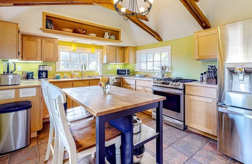 A charming and whimsical getaway awaits along the gorgeous coast of northern California. Surrounded by a flower and vegetable garden paradise, you'll have a unique experience of a lifetime while staying here. Tour the area and discover delightful local attractions like Moonstone Beach County Park, Trinidad Head Trail, Big Lagoon County Park, and Cal Poly Humboldt, all within a 13-mile radius. Relax in the bubbling hot tub and witness a world-famous California sunset, and peek at the view of the Pacific in the distance to top off a perfect day of adventuring. Roast marshmallows and tell stories around the firepit as the stars come out to dot the sky.