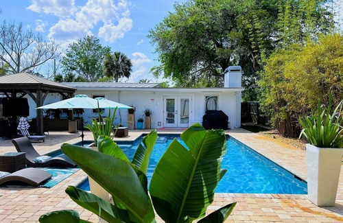 Welcome to Isla's Beach Oasis! This single-story beach house is on a quiet street in beautiful Jacksonville Beach, just 12 blocks from the ocean. It has 3 bedrooms and 2 bathrooms and offers a tranquil retreat with a stunning backyard oasis. Isla's Beach Oasis features two inviting living areas, complete with a pull-out sofa bed, ensuring ample space for both children and adults to unwind. The backyard is a haven, featuring a heated saltwater pool with a spacious lounge ledge, a charming fire pit, a gazebo for shaded outdoor dining, and a Smart TV. The fully stocked kitchen is ready for your dream vacation or extended stay. Isla's also provides everything you will need for a fun beach day; umbrella, chairs, rolling cooler, beach wagon, and towels provided - just bring your sunscreen and be ready to make memories.