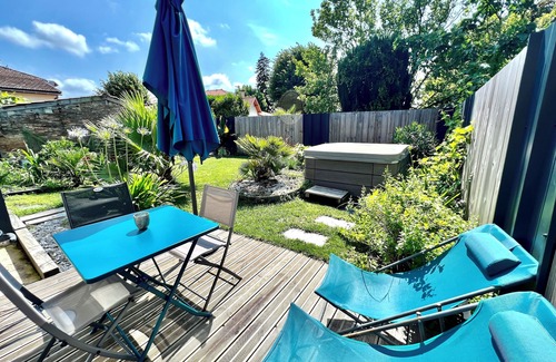 Jacuzzi à la Belle Étoile - Terrasse et Clim is located in Gujan-Mestras. Jacuzzi à la Belle Étoile - Terrasse et Clim provides accommodation, featuring Air Conditioner, View, Bedding/Linens, among other amenities. This House features Air Conditioner, View, Bedding/Linens, to make your stay a comfortable one.
