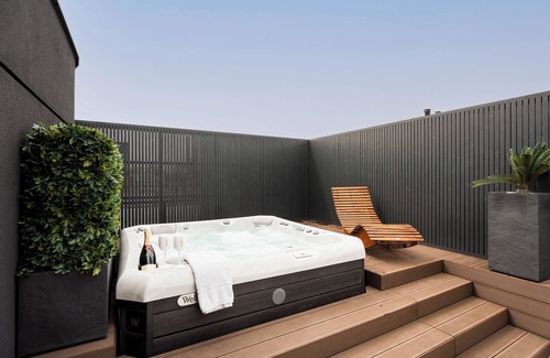Step out onto your private rooftop terrace, your personal outdoor oasis in the city. Enjoy the jacuzzi with panoramic views, bask in the sun on loungers, or cool off in the outdoor shower—all without leaving the apartment.