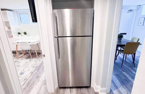 This inviting apartment is situated on the ground level, with just three steps leading down to your private entrance. From the charming brick exterior to the bright, modern interior, this apartment perfectly blends historic character with fresh, stylish design. Whether you're visiting for work, exploring the city, or simply looking for a stylish and comfortable place to relax, this thoughtfully designed apartment offers the perfect home base for your stay in Providence. It’s in a friendly and safe neighborhood right across from the Ivy league Brown University. We can accommodate up to 6 guests. Despite the thorough renovations of all our apartments, the building itself remains an older structure and is considered unsuitable for young children. However, if your children are 2 years or older and you understand these considerations, we would be happy to accommodate your stay. There is one off-street parking spot in the lot diagonally across the street from the apartment.
