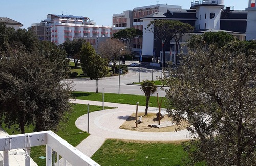Lovely apartment (75sqm) located in Piazza Torino, Jesolo, near Venice, on the second floor with two balconies and nice sea view. Only 80 meters to the beach, situated in a cozy and welcoming building with elevator. It has two bedrooms, a living room with a sofabed and flat screen TV, a kitchen with an electric oven and a microwave, a bathroom with shower, washing machine, bidet.