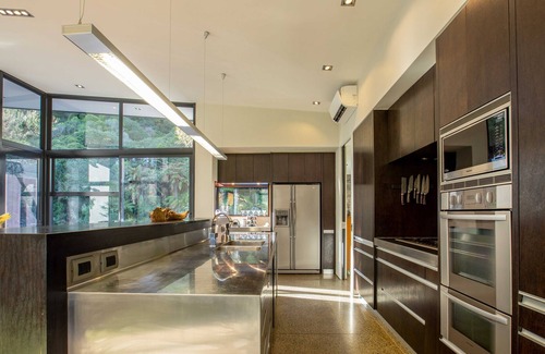 Experience the serenity of Akatarawa forest and river in one of the most prominent architecture masterpieces in Wellington. With 2/3 of the external walls made from double glazed glass from floor to ceiling reaching as high as 4.5m (15ft) you can enjoy the magnificent views of the forest and river inside and out.