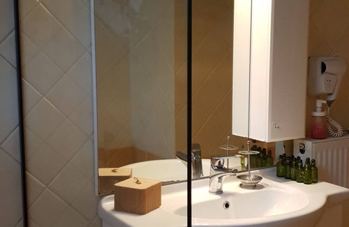 To independent studio Daisy, lies on the ground floor of our property. Decorated in style, since classic elegance never goes unnoticed. The layout and ergonomic design of the kitchen attribute another dimension to the notion of classic. The area of the bedroom serves as a perfect finish to your day. The king size iron bed stands out for its discretion. The bathroom in the color of wheat exudes a flash of brilliance. The wide terrace with direct access to the garden is ideal for mind relaxation.