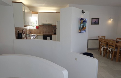 Kitchen is fully equipped: full size oven, refrigerator, dishwasher, toaster, electric kettle & coffee machine.