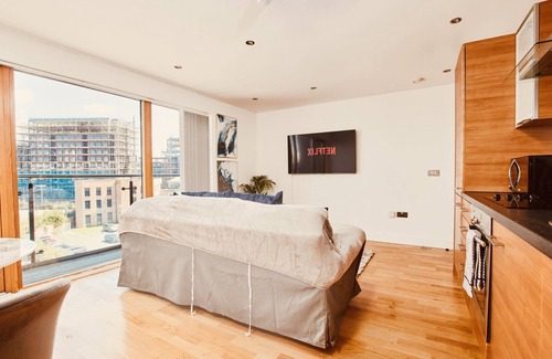 This apartment features an amazing large balcony view overlooking Leeds city, where you can relax. You’ll love this place, and you can expect the apartment to be sparkling clean! Included: FREE PARKING for you to have 24/7 secure parking at the Leeds Dock Car park.