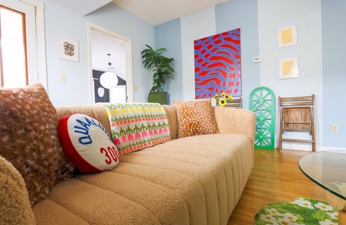 Funky decor and furniture throughout, with art filling many of the walls throughout.