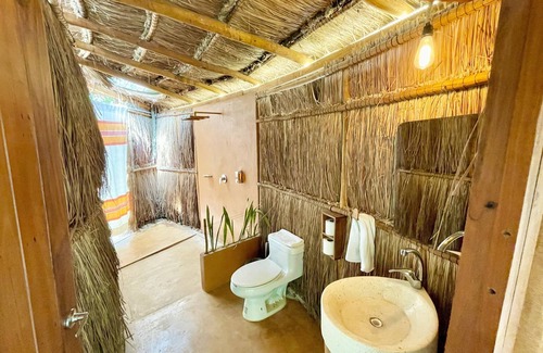 Pool, outdoor kitchen with utensils, half bathroom, fountains and streams, hammocks, outdoor room, outdoor parking, Wi-Fi (it can fail since we are in the jungle) and children's play area.