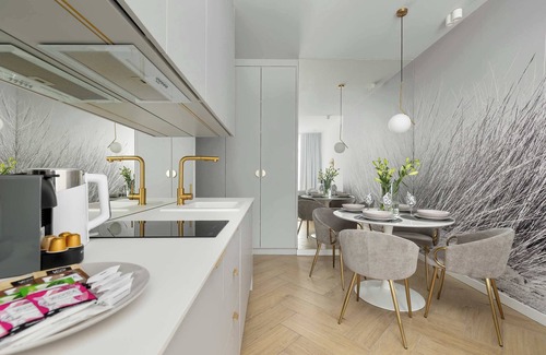 The kitchenette is equipped with everything you need to prepare even the most sophisticated dishes. An induction hob, microwave, and a pour-over and capsule coffee machine will make your morning rituals a real pleasure. Comfort during relaxation on the beach has also been taken into account – sun loungers and a windbreak are available for guests.