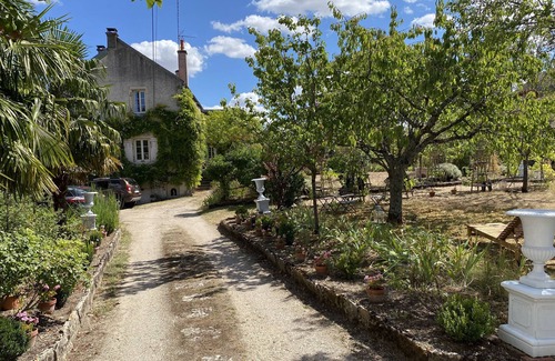 La bâtisse est exposée plein sud et s'ouvre sur un jardin planté de nombreux arbres fruitiers.