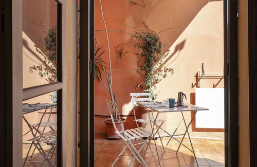 The gem of the apartment is the terrace with table, chairs, sink and plants, where guests can have meals in the open air and enjoy the peace of the Genoese alleys.