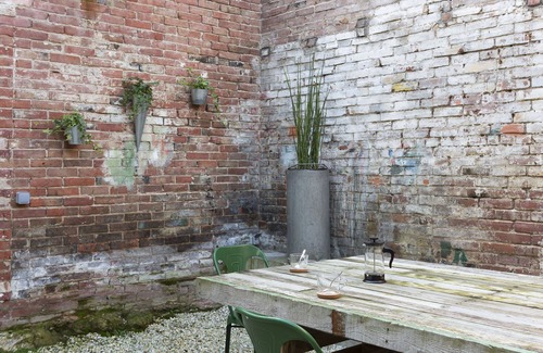 - Private courtyard with a large dining table, deckchairs, not overlooked.