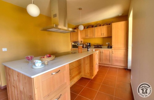 Splendid stone-buit house, totally detached in extensive shady grounds, on edge of forests. Light and cosy interior, with character (old parquet floors, exposed beams, hexagonal floor tiles). Ground floor : entrance hall, lounge (library, fireplace), large living room/kitchen (dining area, kitchen area), laundry room (washing machine, tumble dryer), storage room, Wc, cellar. 1st floor : 2 corridors, 4 bedrooms each one with 2 single beds that can be joined on request to form king size bed. 2 shower rooms, 1 bathroom. Wc. 2nd floor : 2 bedrooms (double bed or 2 single beds on request, small washroom with washbasin) (2 single beds). Cot on request. Outdoors : paved terrace. Extensive, flat and grassy grounds with trees, garden furniture, barbecue, deck chairs. Beautiful open view, hiking trail very nearby (the gîte has received the label Compagnon de Route). Bed linen & towels supplied free. Warm welcome from owners, winegrowers, who are living 500m away. If guests are interested, they can arrange a tasting of their Beaujolais wines. Villefranche-Sur-Saône 13 km, Lyon 45 km.