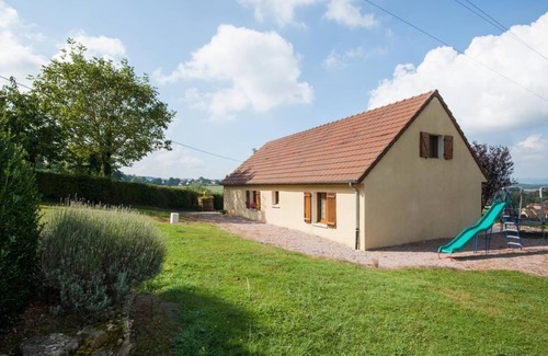 Owner of the neighboring guest house located a stone's throw away, Danièle welcomes you to a beautiful contemporary country villa (dating from 2003) nestled in peace, on the south-east hillside, well exposed, on the edge of a vast circus of meadows (with Aubracs & Charolais as peaceful neighbours) within a mini rural hamlet overlooking the village of Curgy (a listed Romanesque church from the 11th century). Nestled in the heart of the Morvandelle Autunoise countryside, 10 km from the majestic Château de Sully (16th century / listed as MH), one of the most beautiful French private châteaux open to the public, birthplace of Mac Mahon, President of the French Republic, in the hollow of a verdant bocage valley bordering an immense wild forest massif (set of several vast state forests) and the bucolic Drée valley (& its fish-filled river), this small typical village benefits from a soothing unspoilt rural setting of gentle mountains hilly. Spacious comfortable cottage. Warm country character. Large game room nestled under the roof in cabin mode. Large terrace area of 70m² largely sheltered. Pleasant lawned garden with ping-pong table, trampoline & swing. Superb unobstructed view of the surrounding countryside with the Morvan mountains in the background. Access to the owner's exceptional indoor heated swimming pool located 50m away (3.5x9m / shared with her guest room / pool-house with shower-WC). Composition: Detached house neighboring the owner's house (total independence without vis-à-vis). Wireless. Heat pump heating. Ground floor: living room-kitchen-lounge, 3 bedrooms (2 with double bed 140x190cm / 2 single beds 90x190cm) including one with private shower room (shower/WC), bathroom (bathtub/multi-jet shower), separate WC . 1st floor: bedroom (2 single beds 90x190cm), children's playroom/TV, separate WC. Terrace (sheltered and uncovered) + garden + private parking. Shared swimming pool (from May to the end of September). All amenities 9 km.