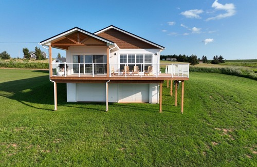 Waterfront brand new 4 bedroom 2 bathroom cottage fully furnished with high-end finishings for you to enjoy. Open-concept kitchen, dining, and living room overlooking the scenic Sou-West River. The living room has internet TV (No cable)and high-speed internet with Wi-Fi. The Master bedroom has a king-sized bed, and a full ensuite bathroom featuring a custom tile glass shower. The other 3 bedrooms all have queen-sized beds. The large wrap-around deck is where you'll want to spend your time! The grass is just seeded but there is lots of room at the bottom for kids to play or walk to the beach and watch the kids search for sea glass for hours! Gorgeous firepit to enjoy in the evenings. !