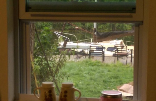 Attractive retreat, two bedroom cottage located between a lake front yard view and a back yard lagoon that leads to the outer Sturgeon Bay waters. Our private Dock is a 75' bulkhead and offers a safe and secluded place to tie your boat as well as enjoy waterside breakfast, lunch or dinner on our comfortable Dock Deck Table set. Enjoy our Lagoon quick access to the Outer Sturgeon Bay waters for your power or sail boating pleasure and fishing in Beautiful Door County. Excellent for kayaking, or floating around the Lagoon in your inflatables.