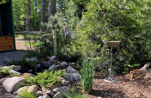In the warm seasons, take your brimming, morning-coffee mug outside to greet the early morning sun (and often a few deer) from the front covered patio. Or turn the corner into an intimate, zen-pond garden. Simply switch on the recirculating pump, settle into the Adirondack lounge chairs within our screened-in gazebo and listen to the soothing trickle from the bamboo spout. In the evenings, the fire-pit awaits!