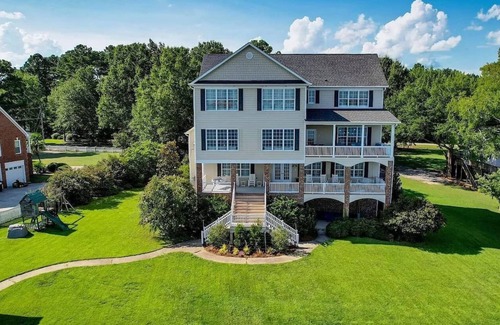 6 bedroom 8 bath house on the main channel of the lake. Lake Wateree is a 21 square mile lake in the northern part of South Carolina. This home has magnificent views of the lake or view it up close with optional pontoon rental. Two marinas within 2-3 miles. First floor (2nd story) is elevated and contains the 2nd kitchen, game room including pool table, and bedroom with queen bed and single bunk w full bath. There is also a porch the entire length of the house with 5 rocking chairs and 2 bench swings. The main living area on the 2nd floor (3rd story) contains the main kitchen and dining area, a large living room with adjacent sunroom. A balcony off dining area is perfect for relaxing and viewing the sunset. This floor also contains the "bunk house" with 4 single beds and 2 double beds. The 3rd floor (4th story) contains the final 4 bedrooms. All bedrooms have full bath attached. Two half baths on the 1st and 2nd floor.