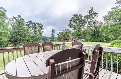 The Hidden Gem is a beautifully maintained, tri-level home set up exclusively for our VRBO guests. On the upstairs level are two bedrooms with a full bath, just five steps UP from the main level. On the main level you'll find the kitchen, living room, office, dining area and living room with a flat-screen TV. Glass doors take you out on a deck with a dining table and chairs overlooking the lake. 10 steps down you’ll find a bedroom and bath, plus an additional den with a flat-screen TV in case your group likes watching different programs, with a glass door that leads directly out to the backyard and lake. This den converts to an additional bedroom with a pull out queen sized hide a bed. There is a laundry room with a new washer and dryer, covered outdoor seating, boathouse with tie-ups for a boat, fire pit, charcoal grill, picnic table, and dock. Marcos Pizza is yummy & delivers, plus Applebee’s, Longhorns, and many other restaurants are a short five minutes toward downtown Milledgeville. For your entertainment and dining super close, there is a cool local restaurant on the lake, Ole Chobys (Formerly Jackson's). They feature a live band, and dinner every Friday and Saturday evening.