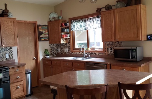 This home has all the desired amenities to make your vacation unforgettable. Home has 2 complete living areas. Each with a full kitchen, dining area, living area and 3 bedrooms. Total home has 6 bedrooms and 3 full bathrooms, 2 with walk-in showers and one shower over tub. But the outdoor space offers even more! Huge deck, 6 person hot tub, Traeger grill, awesome fire pit area, a pier, pontoon boat and plenty of sitting areas around the yard with great lake views. Enough pier space that you can bring your own boat as well. Great Trails for ATV or Snowmobiling. The open floor plan allows more than ample room for friends or family to enjoy their vacation together. Fish during the day and take a sunset cruise at night. It is located on the Reservoir Pond, but you can explore 3 additional lakes. This location is only minutes from shopping, restaurants, and outdoor activities. For your convenience, this home offers free wifi and cable TV. Call today for more details.