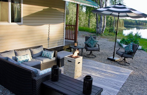 lakefront cabin with boats, sauna, hot tub, fire pits, trails, fishing gear is located in Susitna North. lakefront cabin with boats, sauna, hot tub, fire pits, trails, fishing gear provides accommodation, featuring Kitchen, Other, Security/Safety, among other amenities. This Cabin features Kitchen, Other, Security/Safety, to make your stay a comfortable one.