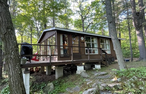 A Lakefront cottage perched atop an outcropping of the iconic Canadian Shield in Ontario's coveted Muskoka Lakes region. A cozy 2-bedroom space with a full kitchen (stove, fridge, microwave, toaster oven and coffee maker). Please note: 4 person maximum. The bathroom comes with shower. Water is from a drilled well and safe to drink. A large deck offers a view that belongs on a bottle of whiskey. Stair from the the cottage area lead down to a waterfront that has a walk-in access point with about 15 feet of sand which then transitions to a lake mat that is comfortable to walk and play on. A canoe, 2 paddle boards and a peddle boat are available for you to explore Kahshe Lake or the nearby river that leads to Bass Lake. A quick 20-minute drive to Gravenhurst (a Muskoka hot spot) and just under 2 hours to drive from Toronto. Strong wifi (25 mbs) makes this a perfect option for working remotely while enjoying the best Muskoka has to offer.