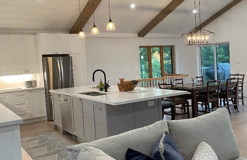 Newly renovated 3000sq ft Lake House with 438' of shoreline & stunning open views. Enjoy boating & fishing on Georgian Bay, kayaking 2 quiet coves on either side of the property, exploring islands, walk out swimming from a sandy shoreline, private sunbathing on the upper deck, lounger reading, patio dining, Muskoka chair views, evening fires, refreshments by the dock or new recipes in the spacious kitchen.