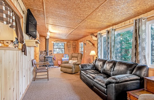 Find yourself slipping into relaxation mode in no time as you look out to the lapping water of Stateline Lake from the deck of Stateline Cabin! Quiet and peaceful, this retreat has the perfect mix of quaint lake decor and modern comforts including free WiFi to keep you connected during your stay. When everyone works up an appetite after a day on the lake, the full kitchen has all of the major appliances including a gas range to whip up tasty meals, and a gas grill awaits on the deck if you want to have a BBQ in the fresh air. Come summer, the backyard will be the hub of all the excitement with a grassy lawn for the pups to run around on, a firepit, and a private dock to launch the provided kayak from! With so much fun to be had right outside, you will never want to leave!