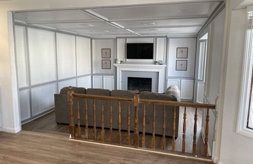 Come settle down at our cozy Lakehouse, supplied with all your favorite amenities! This 4 bedroom luxurious home is a great place to make memories with friends and family. Enjoy the sunrise or sunset while sitting on our waterfront patio. Our home provides comfort with our beautiful modern farmhouse style, giving you two master bedrooms, a cozy fireplace in our family room for some relaxation, a spacious kitchen with new counter tops and modern day appliances.