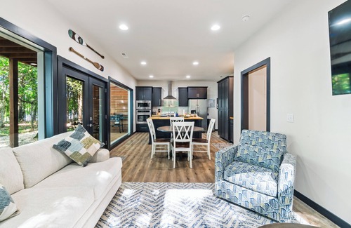 As you step inside, you'll be greeted by stunning floor-to-ceiling windows that frame the breathtaking lake views. The natural light floods the open-concept living area, creating a warm and inviting atmosphere. With direct access to the lake, you can step outside and find yourself on the water in moments. Whether you’re an avid kayaker or a beginner, our two provided kayaks are ready for you to explore the crystal-clear waters of Beaver Lake.