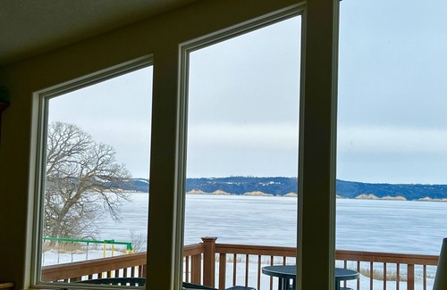This property is located 10 miles from either, Crofton, NE or Yankton, SD and is on the shoreline of Lewis and Clark Lake. This Lakefront home has a sandy beach located in front of the property, perfect for swimming or mooring your water toys. The kids love it too; the shoreline has a gentle slope into the water with a soft but firm bottom. Boat slips are available on a daily rental basis at the nearby Weigand Marina. The large yard will accommodate all of your summer games. There is a huge deck where you can relax and watch the water activities. Kitchens are fully equipped and all towels, toiletry items and linens are provided. Every room is fully furnished and decorated. Our list of amenities includes two large screen HDTVs, blue ray players, washer & dryer, two full kitchens, two fireplaces, two full dining areas, two living rooms, 6 bedrooms, large deck overlooking the lake, Gas BBQ, outdoor fire pit & beach access. This is truly a one of a kind lake paradise rental.
