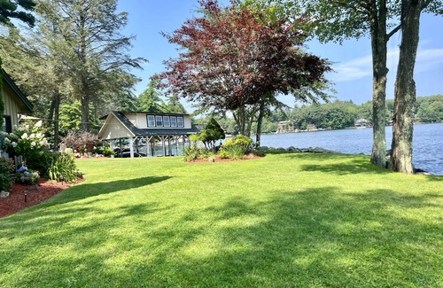 This idyllic Lakehouse sits on the water's edge of beautiful Lake Winnipesaukee. The secluded level lot is situated on a peninsula where you have a spacious yard, sandy beach unobstructed views and spectacular sunrises!! You will find peace and tranquility here while you enjoy the fresh mountain air and serene atmosphere. This is the perfect spot to sit back and unwind with your family/friends. There are three bedrooms, each with a queen size bed. There is also a pull-out sofa in the living room. The cottage features one full bath and a fully equipped galley kitchen. Towels and linens are provided. There is access to the clothes dryer, however there is no use of the washing machine where we are on a septic system. There are two smart T.V's with internet and cable (bring your passwords). We ask that there are no more than 6 people sleeping at the house for the duration of your stay (strictly enforced). We also ask that there is no more than 10 people on the premises at any given time. This property has a large dock with two available boat slips which you are welcome to use. The middle slip is occupied as you may see the owner as they take the boat out for an afternoon cruise. Otherwise, you have access to the two additional slips. The water is crystal clear and perfect for swimming/activities. Please note, the boat house is completely off-limits (strictly enforced.) The grounds are neatly landscaped with lush grass and plenty of yard space. The patio area has a large table by the gas grill. The patio also features lounge chairs where you can enjoy the all-day sun that this property provides. Not a sun lover - no problem... there are plenty of shady trees in the yard to get away from the hot summer sun. We are only a few miles from Alton Bay where you can find a breakfast, lunch or dinner spot. We love our fur babies and want to welcome yours as long as they are well behaved. No one likes incessant barking. We also ask that you are mindful and keep your furry friends away from all the wildlife as well as our neighbors. We work to protect all of nature's creatures and expect you to do the same. Please take the time to walk your dog. We ask that you do NOT let your pets do their business in the yard. There are plenty of walking paths right up the driveway. As pet owners, we know it is difficult to find these type of vacation properties that allows pets... so please be mindful of etiquette. We want to ensure our grass area remains welcoming for all our guests.