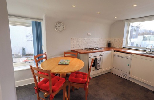 Amenities: Gas central heating. Oven, electric hob, fridge freezer, washing machine, tumble dryer. Smart TV, WiFi. Fuel and power inc. in rent. Bed linen and towels inc. in rent. Highchair and travel cot available on request. Designated parking space for 1 car. Decking with furniture. One well-behaved dog welcome. Sorry, no smoking. Shop 0.1 mile, pub 0.3 miles. Note: There is a metal staircase to access the front door.