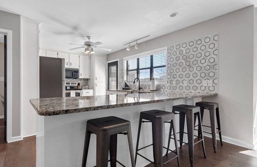Kitchen: fully equipped with cooking basics, pots and pans, dish ware & flatware, grilling utensils, Keurig and drip coffee maker, microwave, crock pot, and toaster. Island bar seating available.