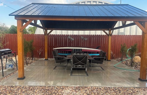 A quiet, private neighborhood — no crowded RV park vibes here. Gazebo with fire pit, grill, and use of water toys.