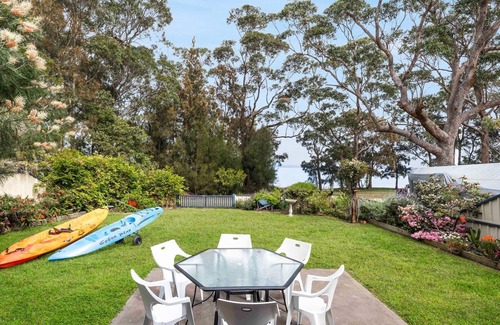 Lakeside Sorrento is right on the St Georges Basin lake. A pet-secure, gated, fenced property with lovely gardens.